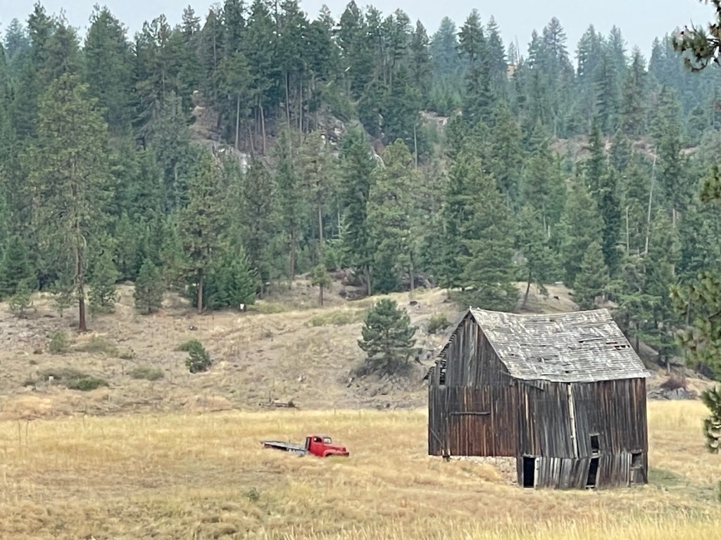 Half way thru ride, came across a store/cabins with drinks and snacks for sale, had lunch there. Had a 4-mile descent into Ione population 447. Felt like I was on a groomer ski slope in Vail cruising down the windy descent, big smile, maxed out at 34mph and was using my brakes, weight on bike gets the bike shaking a little🤪. Supposed to start raining hard tonight with flash flood warnings. 3/4” of rain tonight and all day Wednesday. Staying at cute motel, Riverview Motel, on the river with a laundromat next door to my room!! Jackpot!! Talked with owner about upcoming weather and was told they were already sold out for tomorrow. What!! What to do with weather turning bad?? Think I will sleep on it. Took bike ride into town after cleaning up and ate a cheeseburger at bar/cafe. Town of Ione consists of grocery store, bar/cafe and gas station, another motel with 8 rooms. Let’s see what tomorrow brings with weather turning bad and no room at the inn🤪.