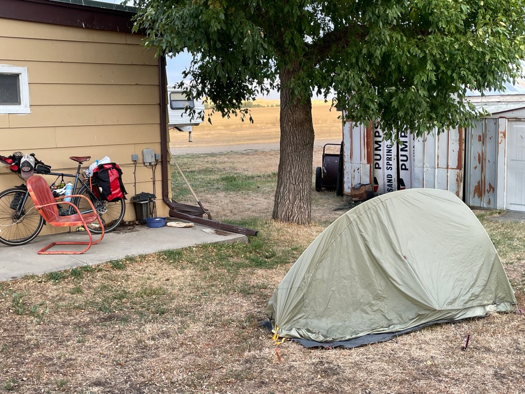 Went to Albertson’s to eat lunch and pick up chicken breast for dinner later tonight. Rolling hills and ascent out of Lewistown, but legs feel like they can handle it. Don’t like not having a shoulder to ride on, kinda sketchy, but Montana drivers seem to willingly move over. Even with the headwind the 79 miles today felt okay. Set up camp behind the Little Montana Truck Stop.