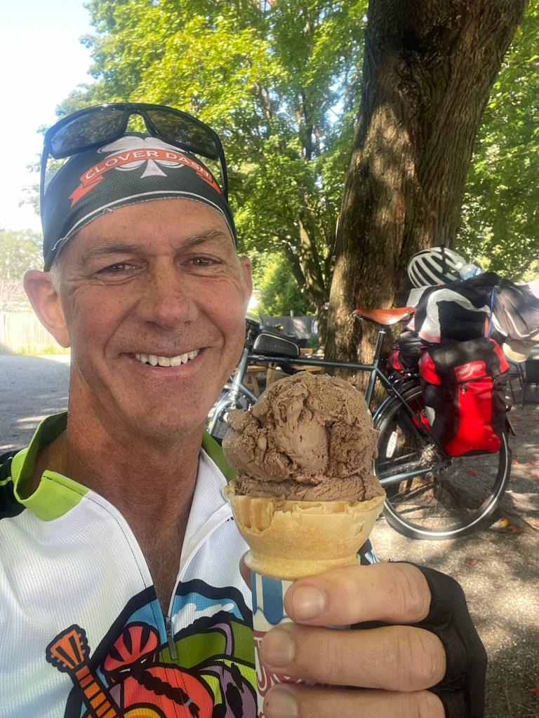 Rode on a bike trail for a few miles and got to a large town, Crystal Falls and there is an ice cream store! As I was enjoying it a young guy talked with me and told me his goal is to run across America. What??!!