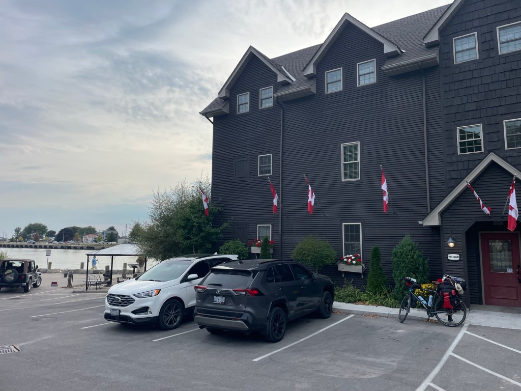 Afternoon ride was much easier. I took a turn heading northeast and got a cross breeze, not nearly as bad as straight on winds. No shoulder for the most part of ride, but traffic was light on a Sunday and no big trucks wizzing by. I made it to Port Stanley right on Lake Erie, a cool Port town and got a room at the Inn on The Harbor, overlooking the channel.